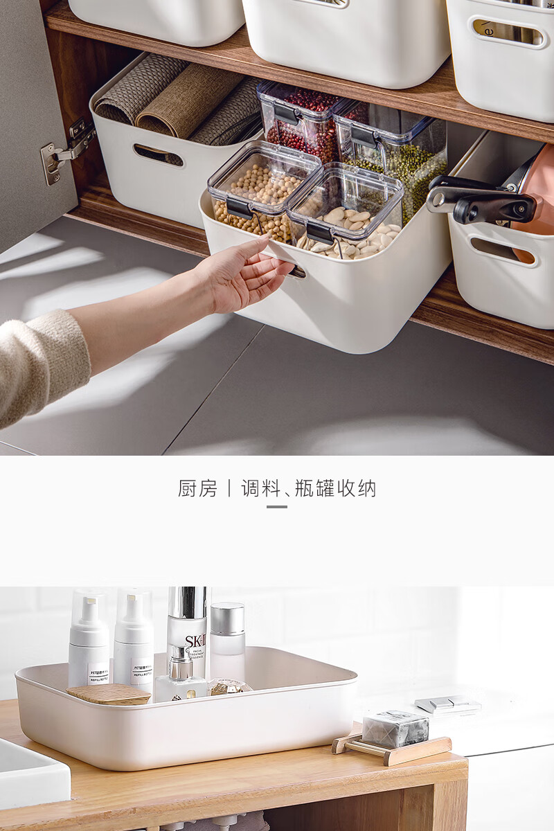 星优 收纳盒桌面收纳盒收纳篮内衣整理盒厨房收纳玩具收纳办公桌收纳储物盒 白色大号