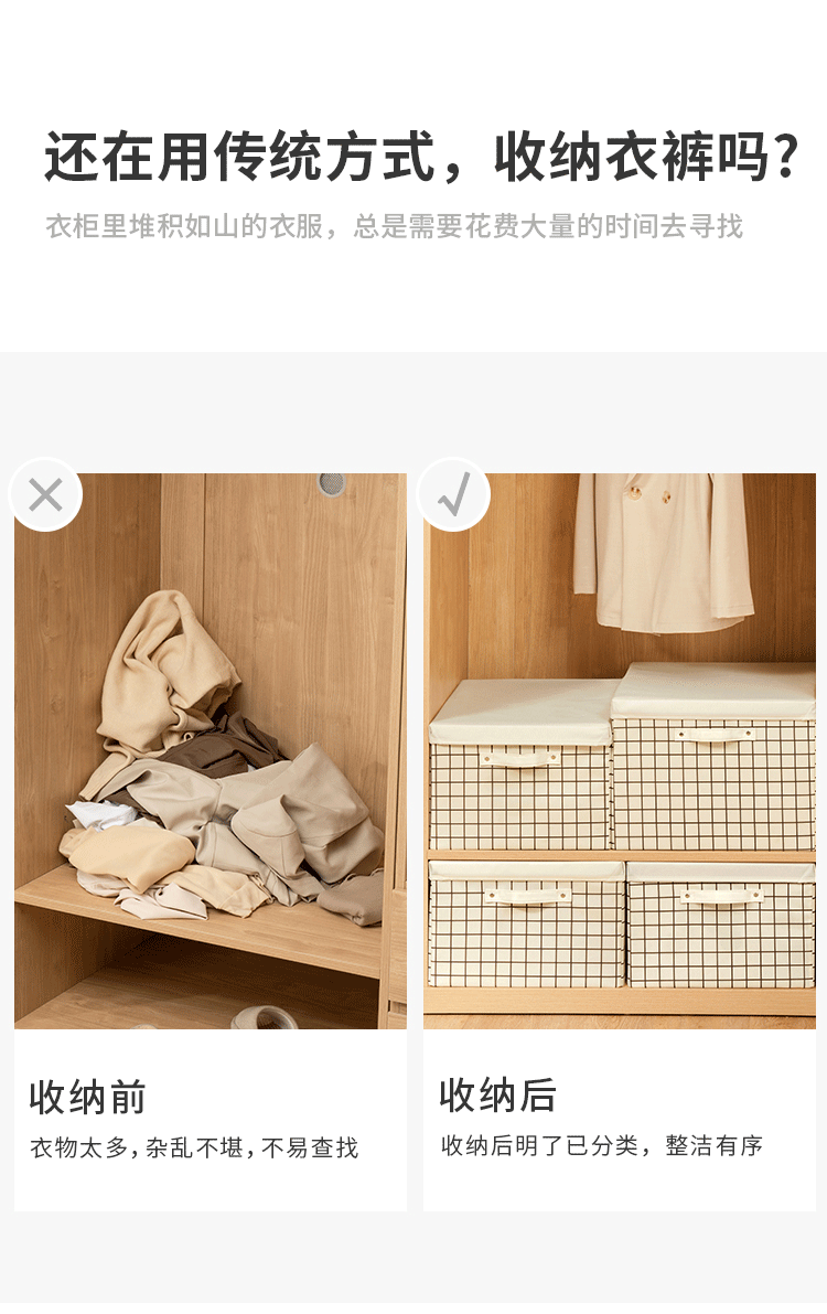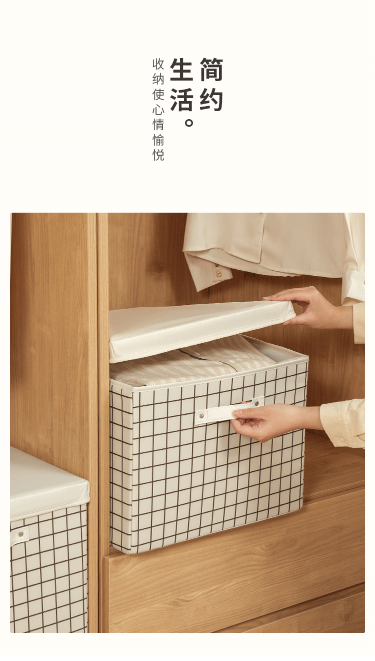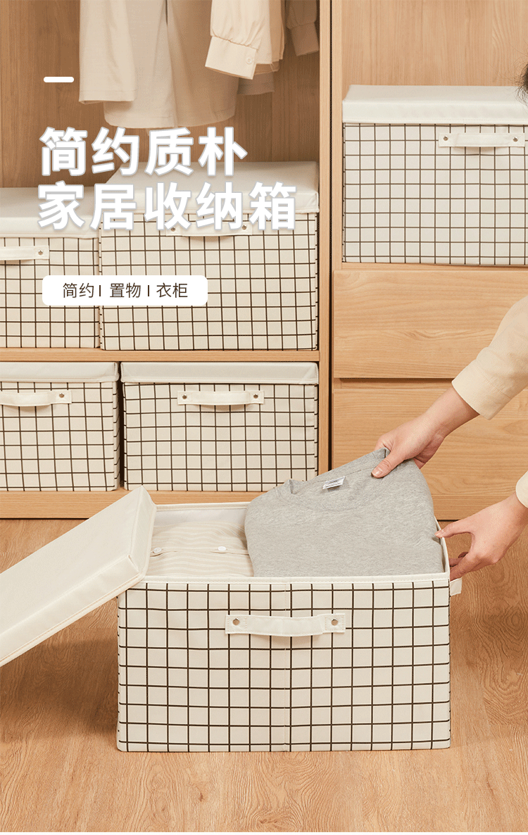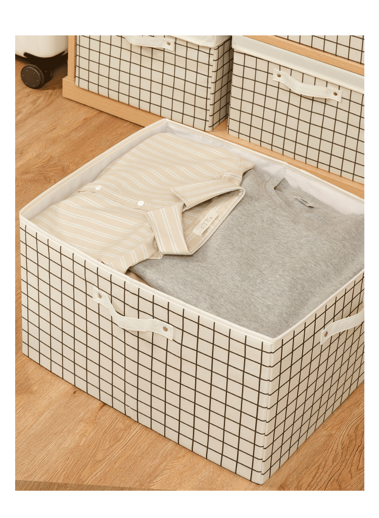 EACHY衣服收纳箱布艺衣柜收纳盒整理箱衣物储物箱家用折叠牛津布大箱子 米色格子 L:45X35X25