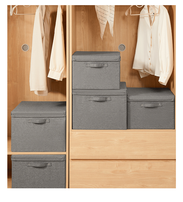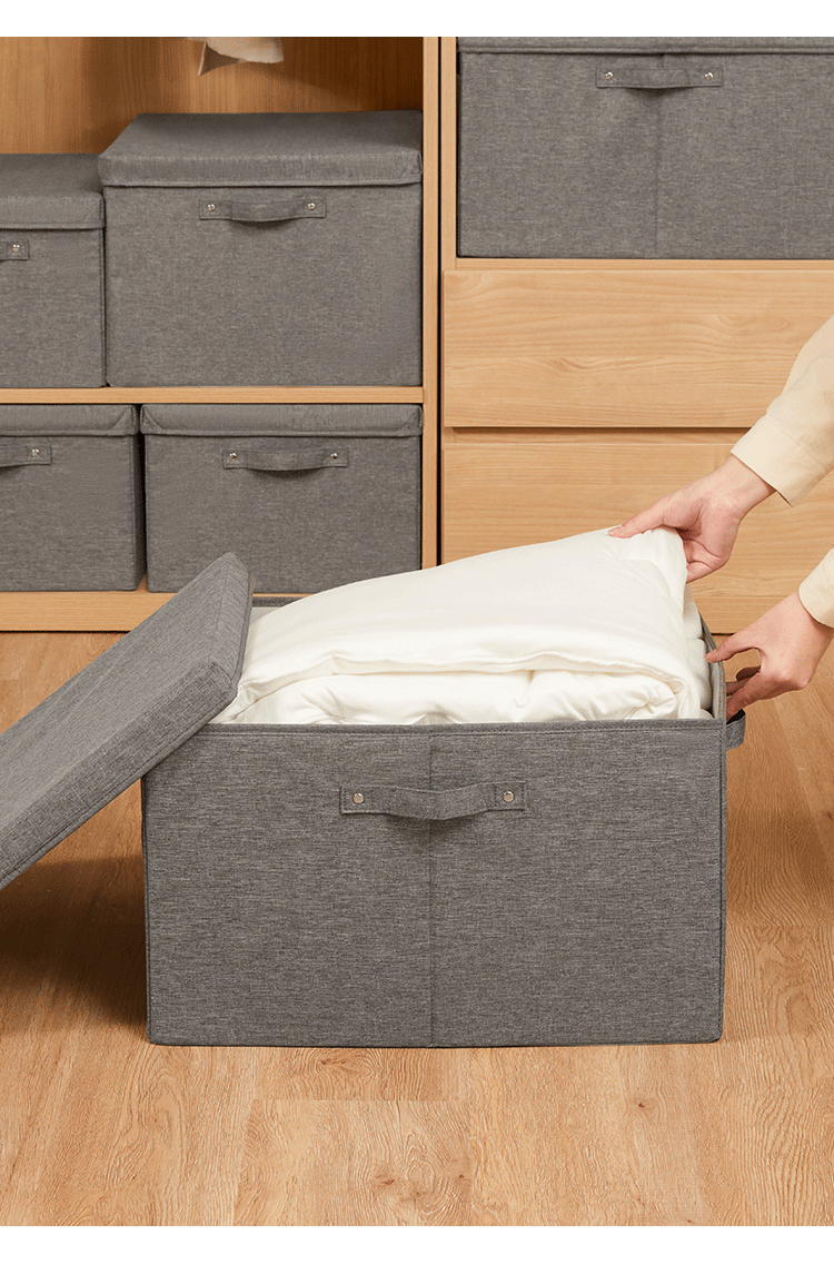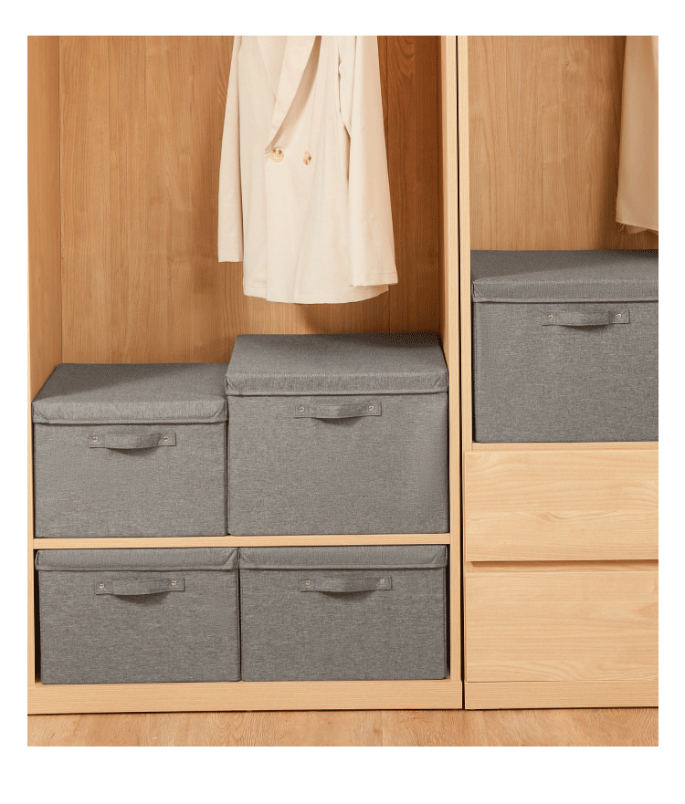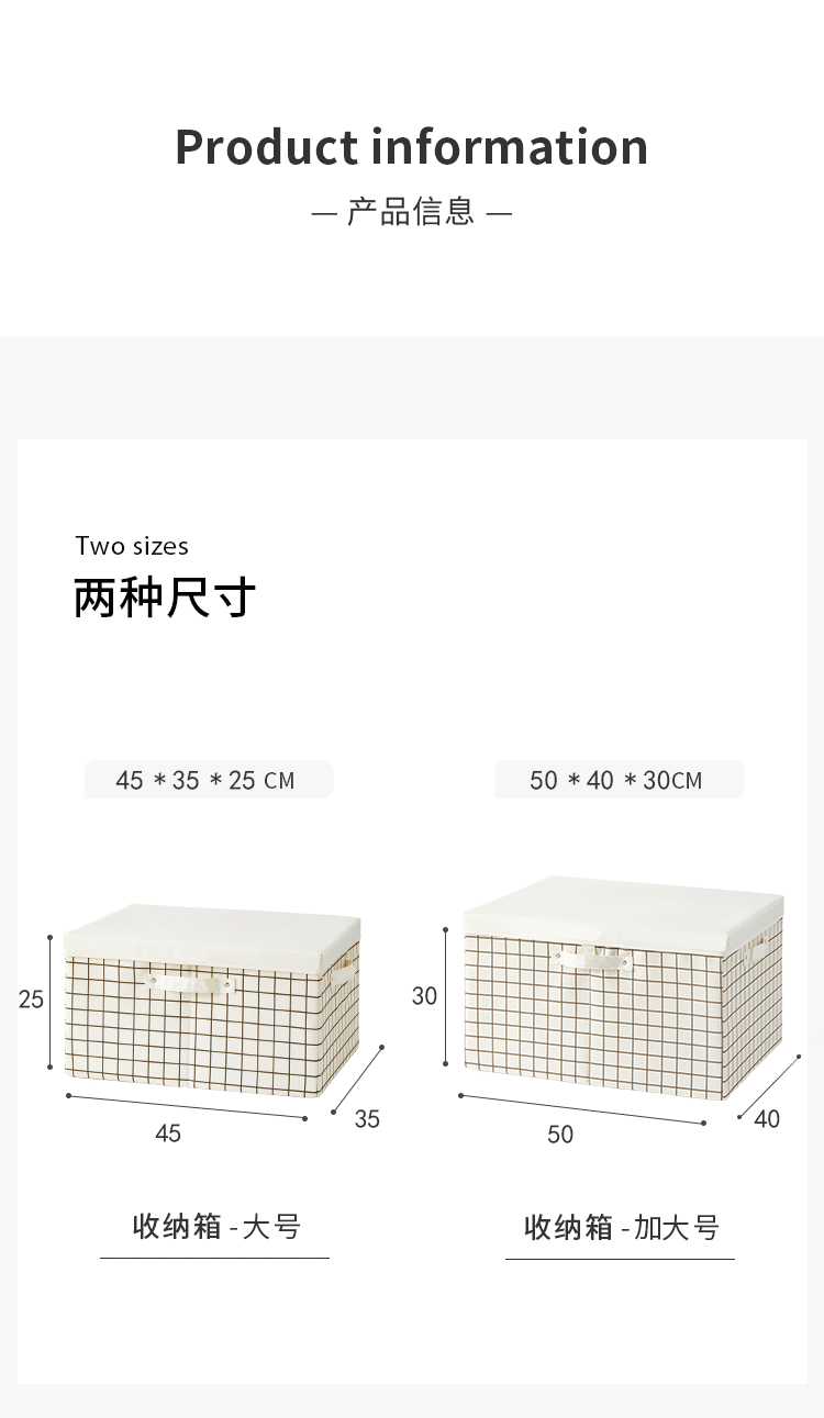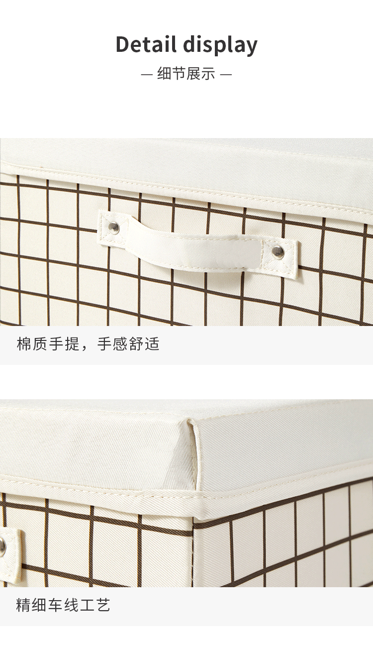EACHY衣服收纳箱布艺衣柜收纳盒整理箱衣物储物箱家用折叠牛津布大箱子 米色格子 L:45X35X25