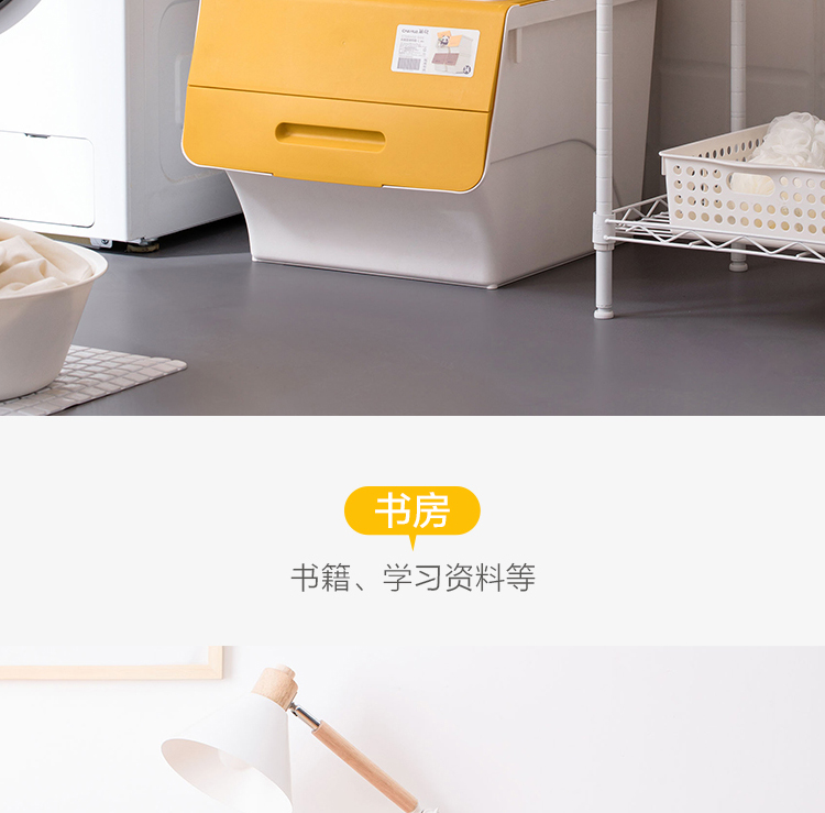 茶花 斜口翻盖收纳箱 衣物玩具收纳盒 衣服整理箱子 河马口前开式塑料箱 内衣储物箱34L 黄色