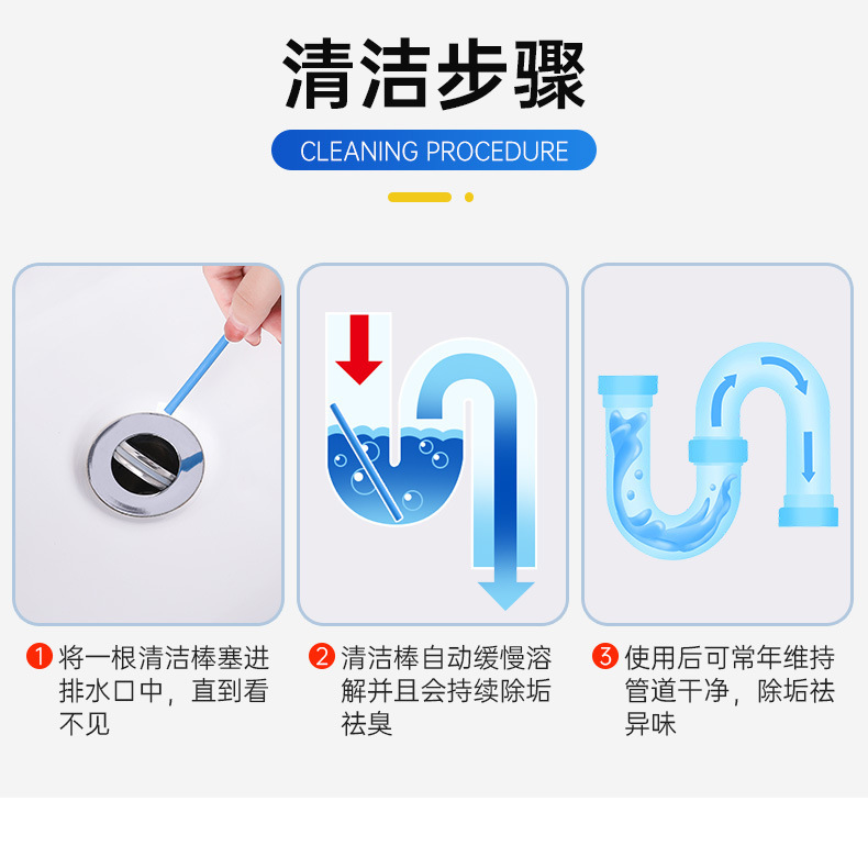 管道清洁棒家用马桶厕所厨房地漏去污棒下水道有效去除污渍清洁棒