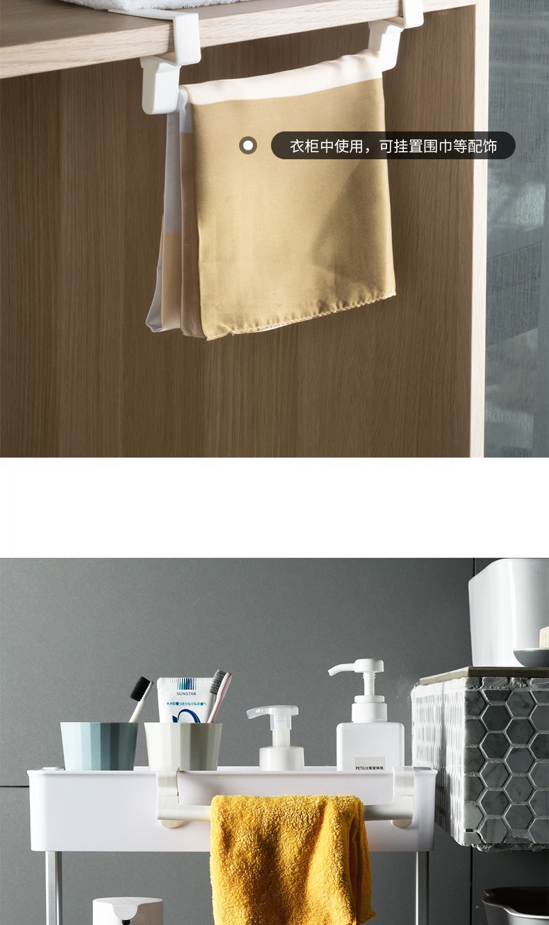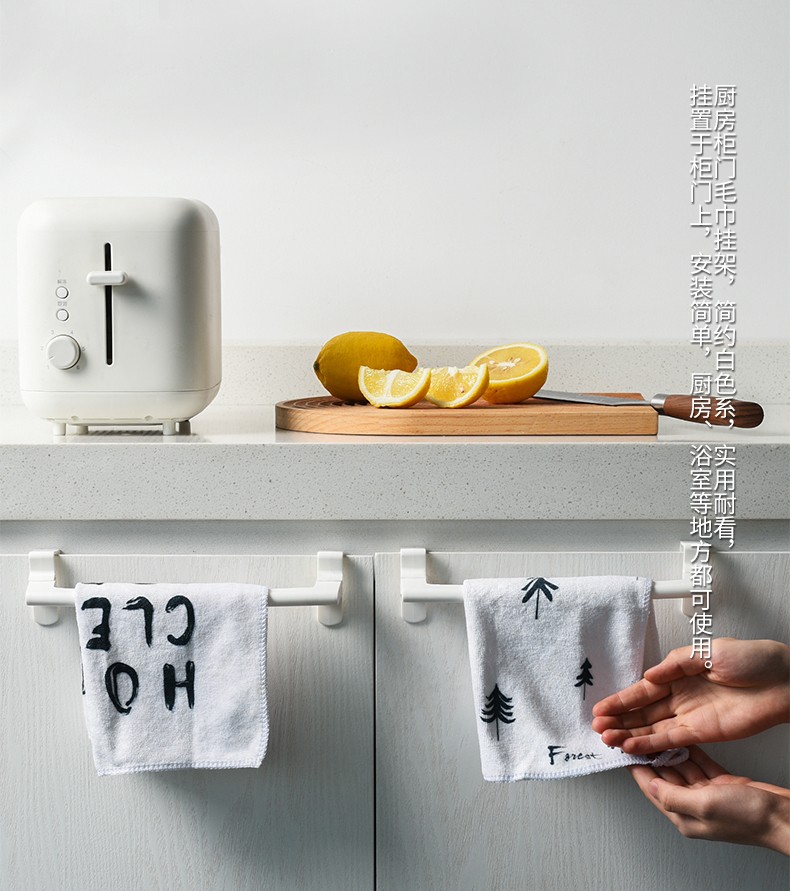 2个装厨房单杆门毛巾架 多用途背式无痕免钉橱柜抹布挂架杂物挂日式无痕厨卫橱柜门毛巾挂架毛巾架