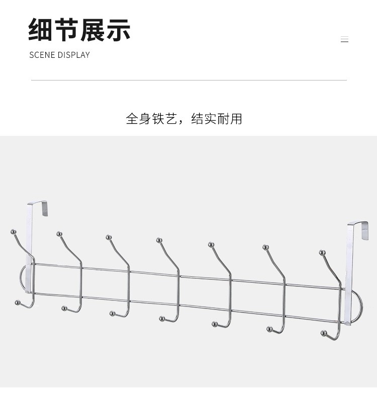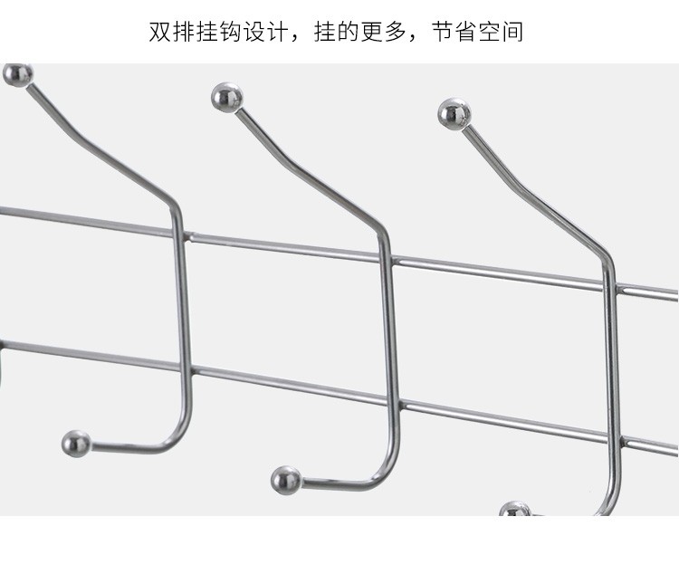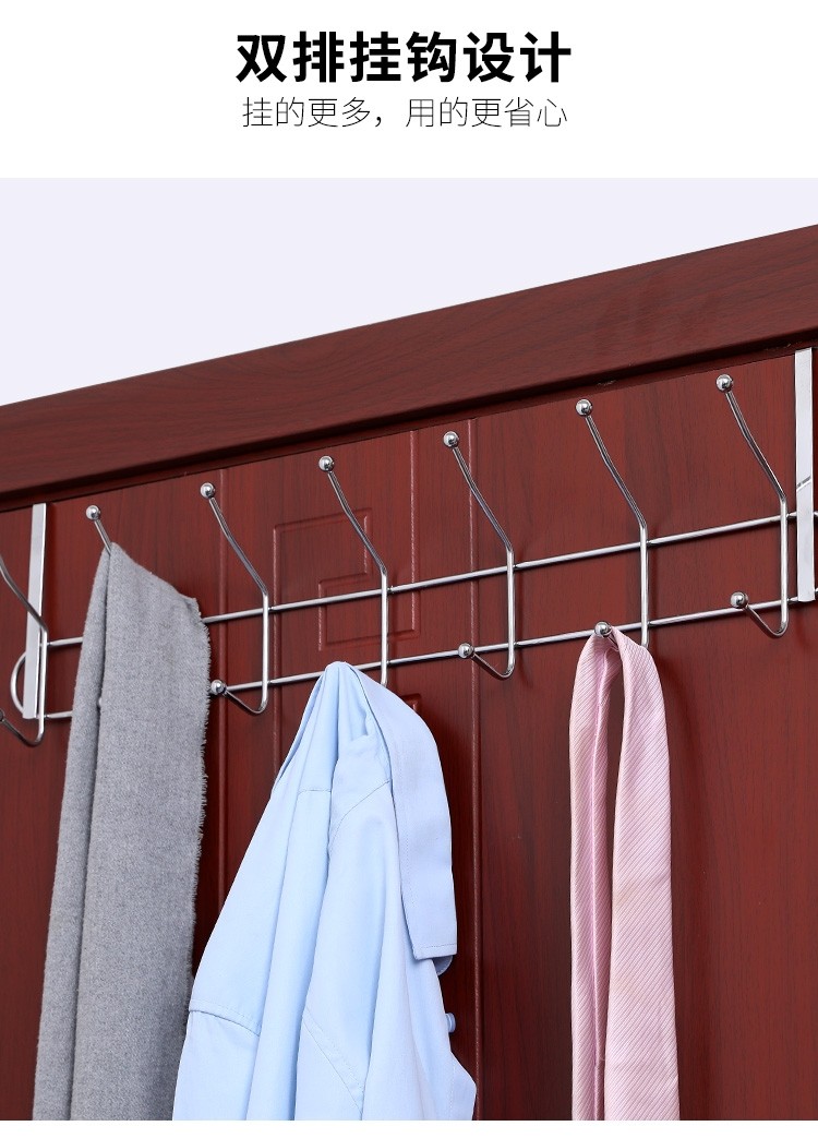 双排不锈钢挂钩卧室门后挂钩挂衣架壁挂墙壁墙上衣服挂钩衣帽钩创意免钉打孔门背式置物架门门后卧室挂衣架