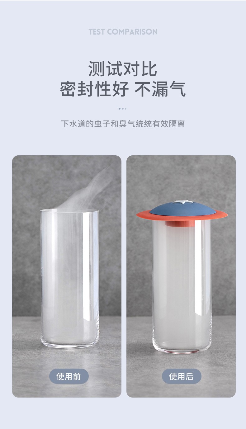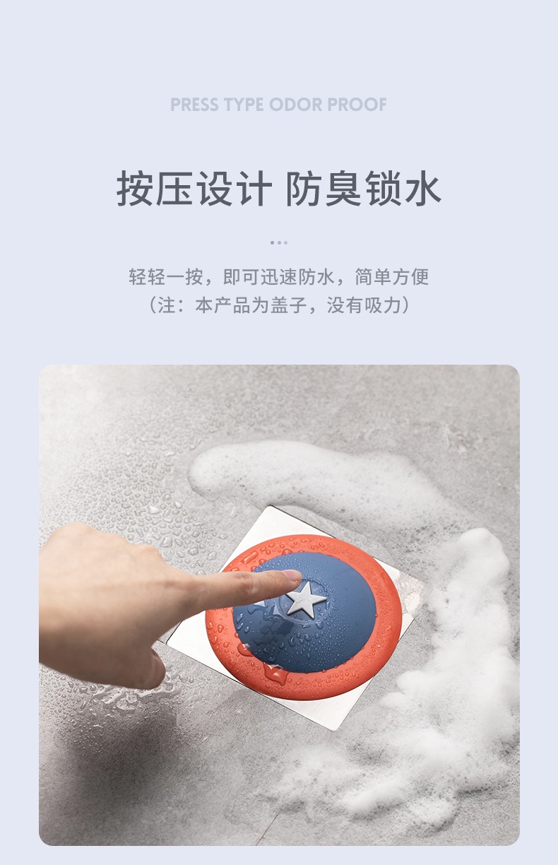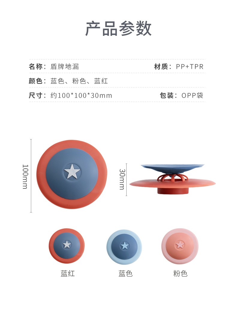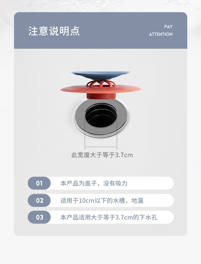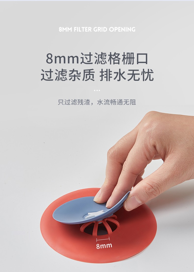 盾牌按压式卫生间地漏盖片浴室头发过滤器下水道防虫防臭厕所地漏盖子厨房水槽过滤网立体硅胶圆形塞子密封盖 红色