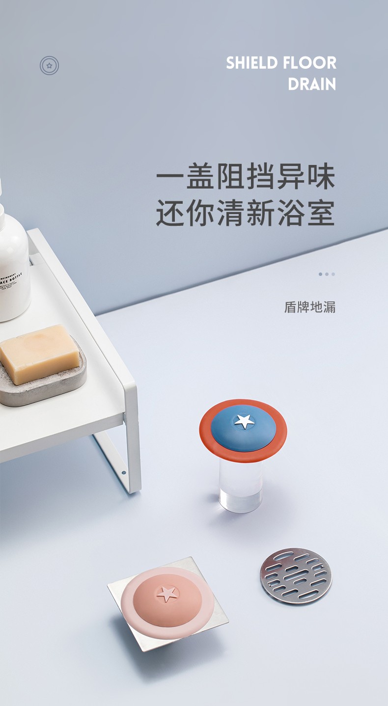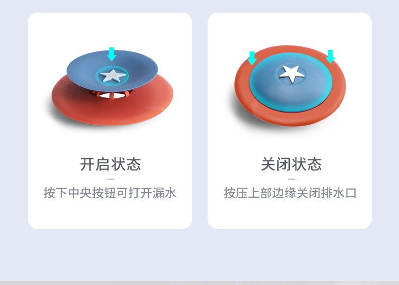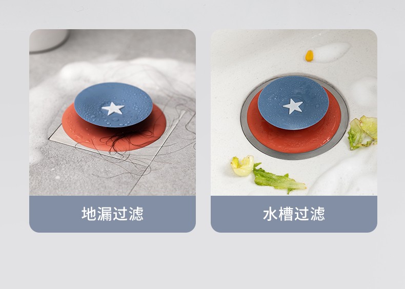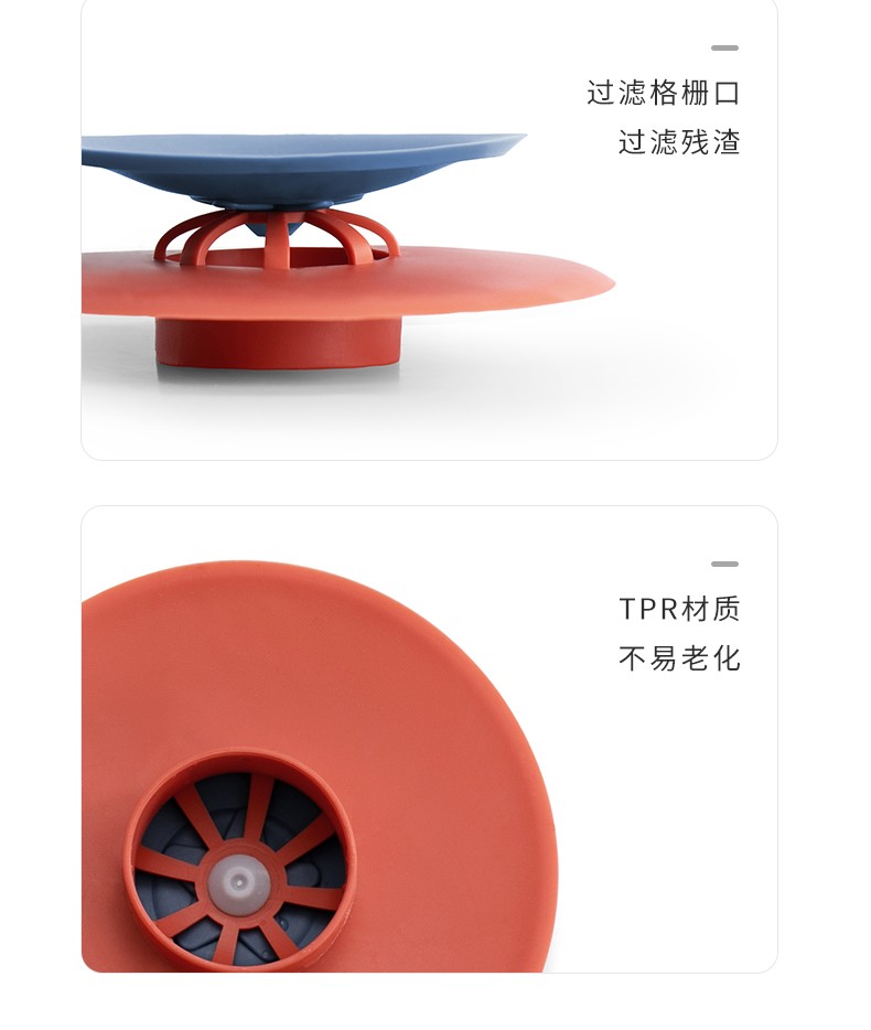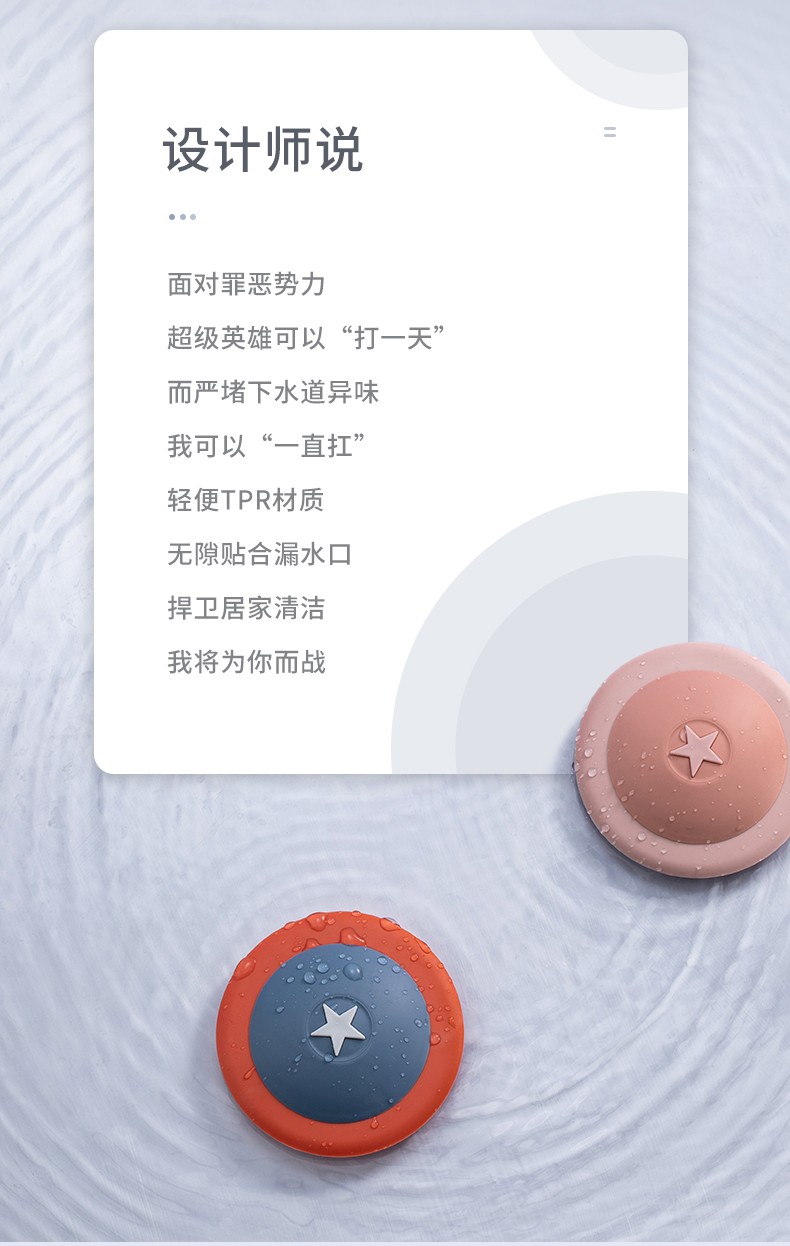 盾牌按压式卫生间地漏盖片浴室头发过滤器下水道防虫防臭厕所地漏盖子厨房水槽过滤网立体硅胶圆形塞子密封盖 红色