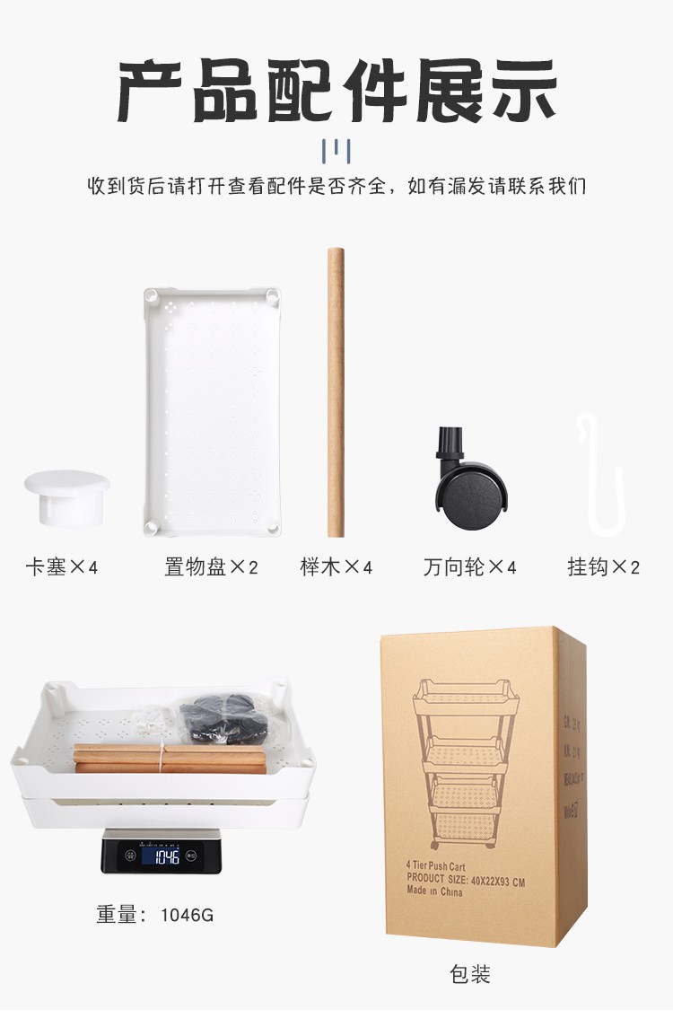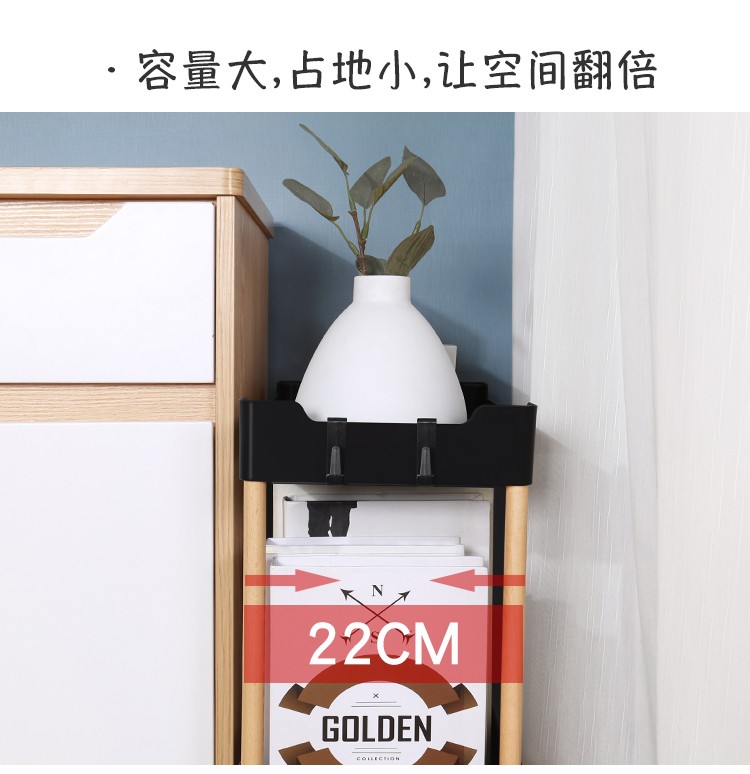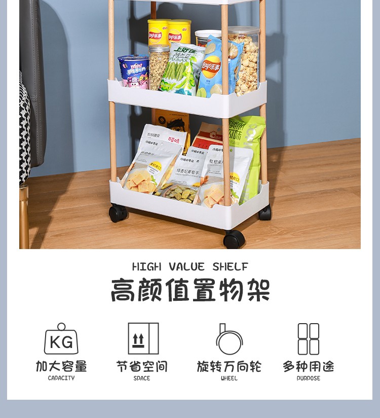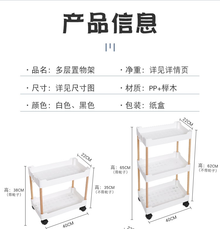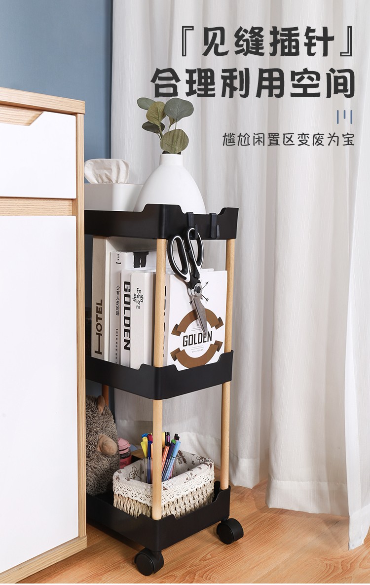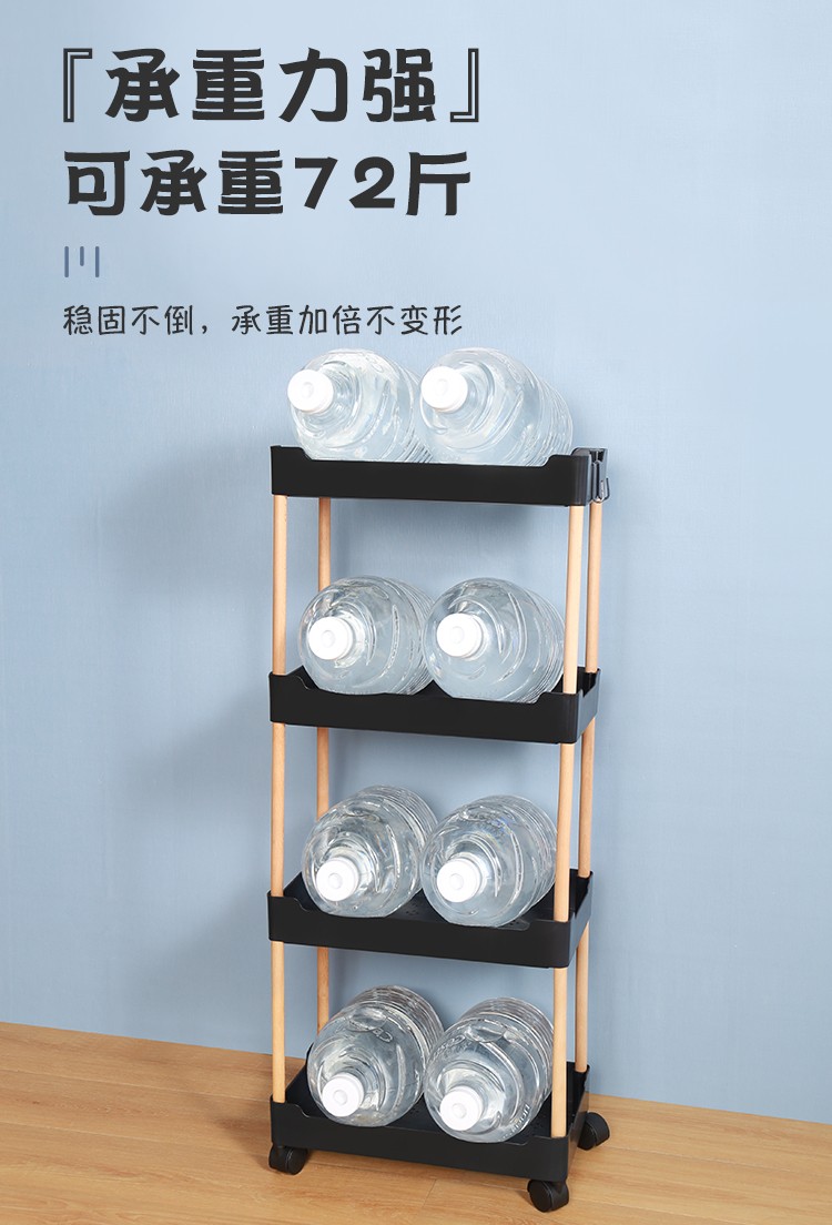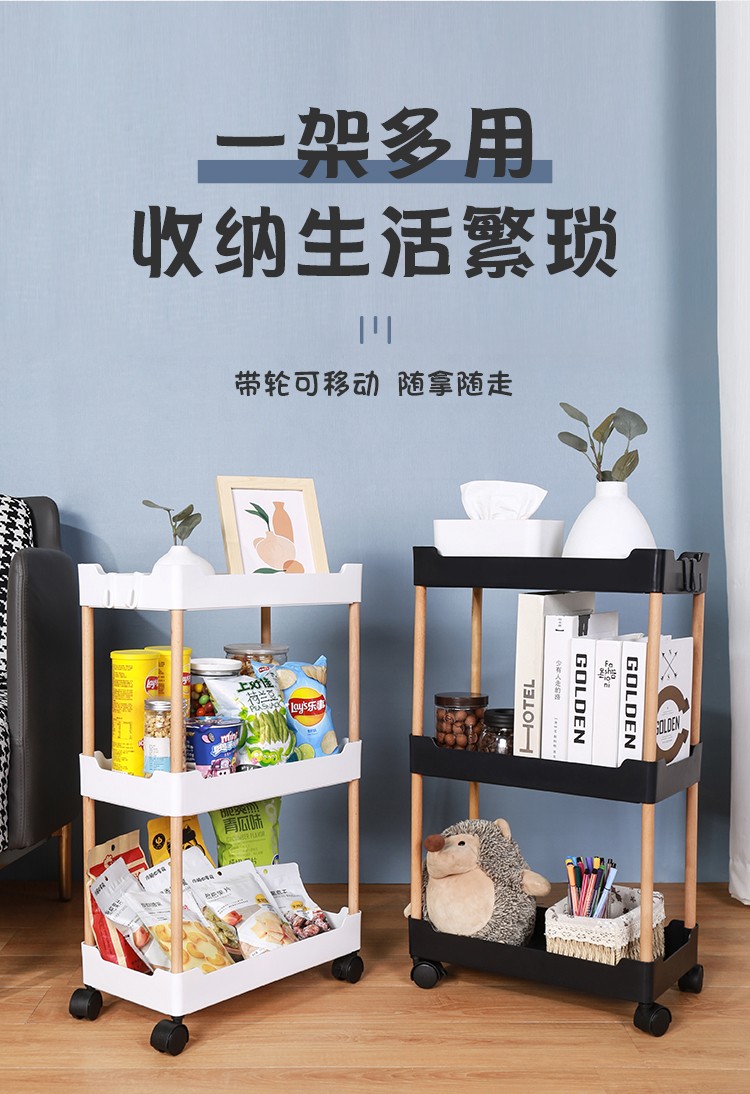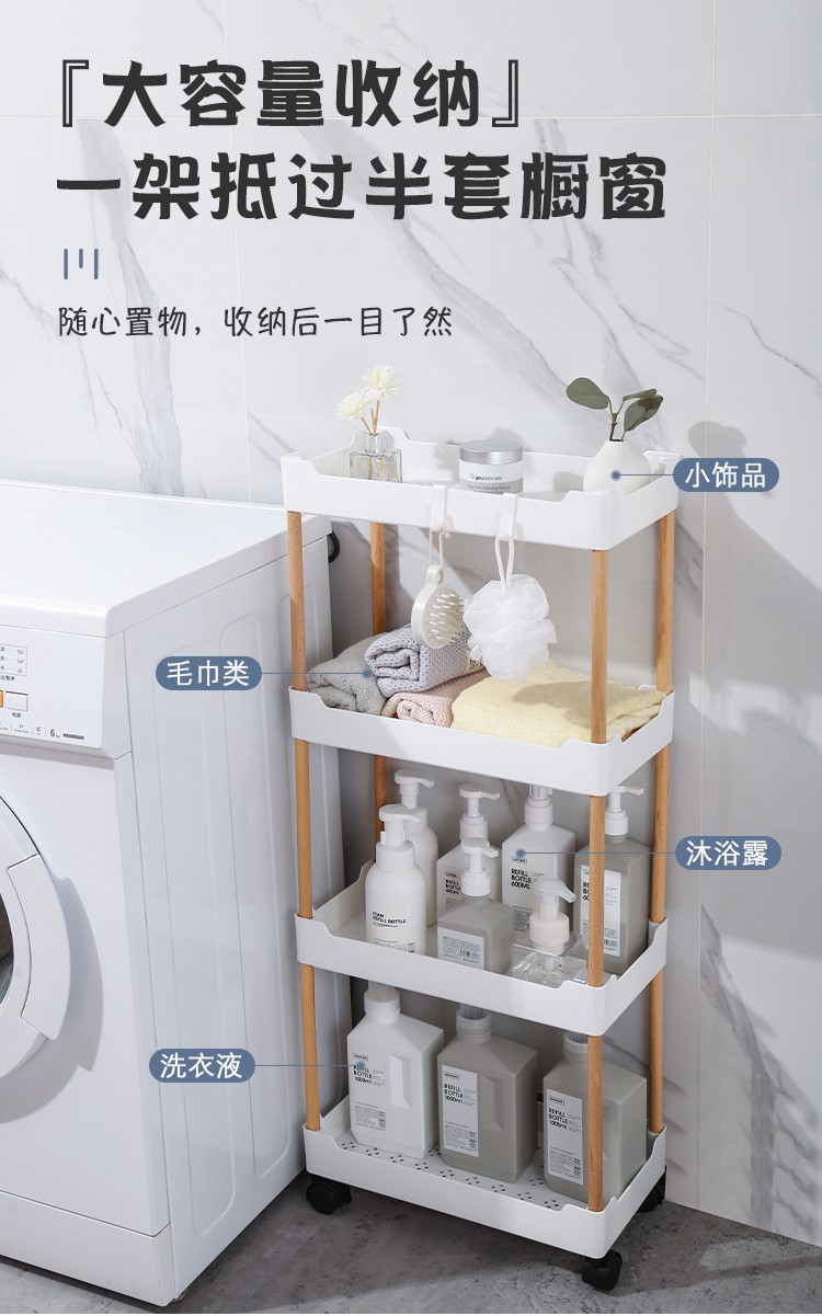 3层置物架木支架款厨房置物架浴室镂空整理架落地多层储物架子可移动小推车带轮收纳架