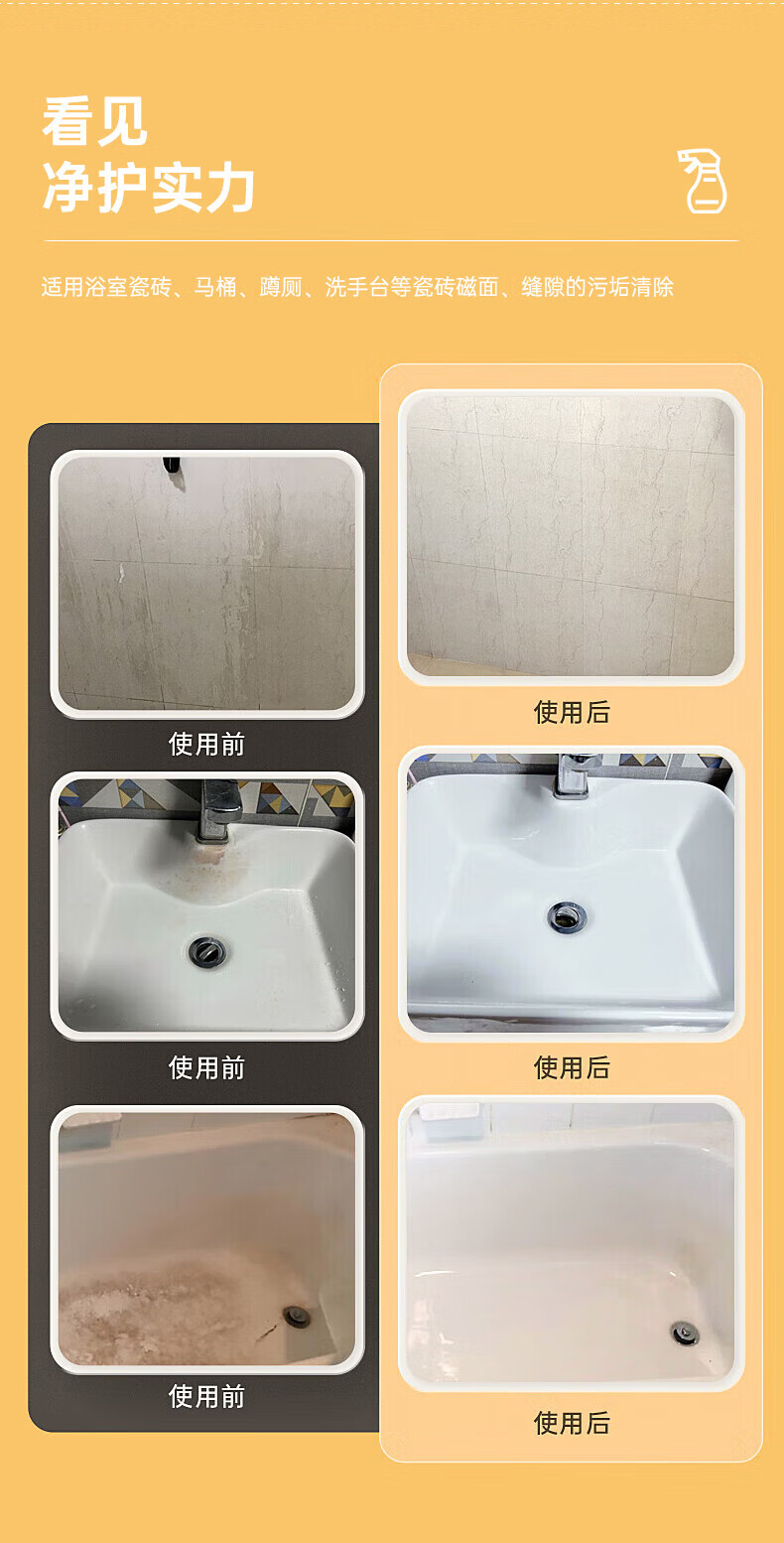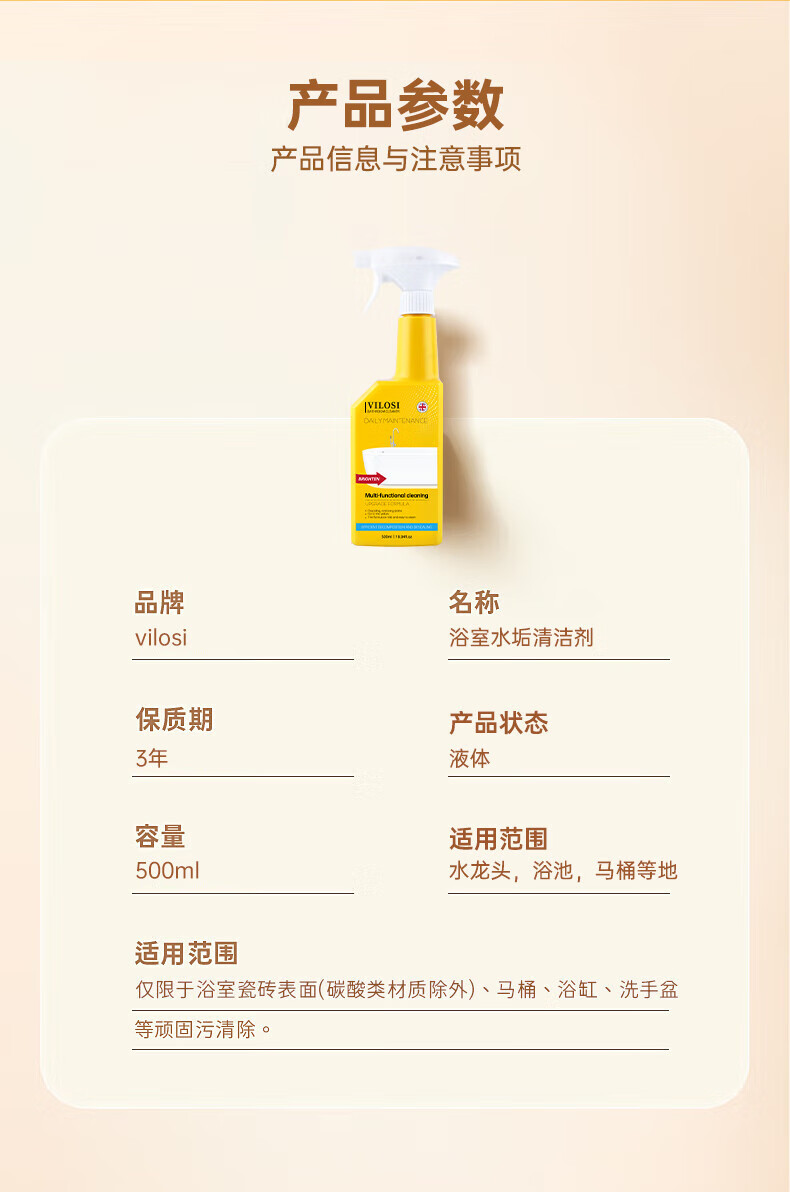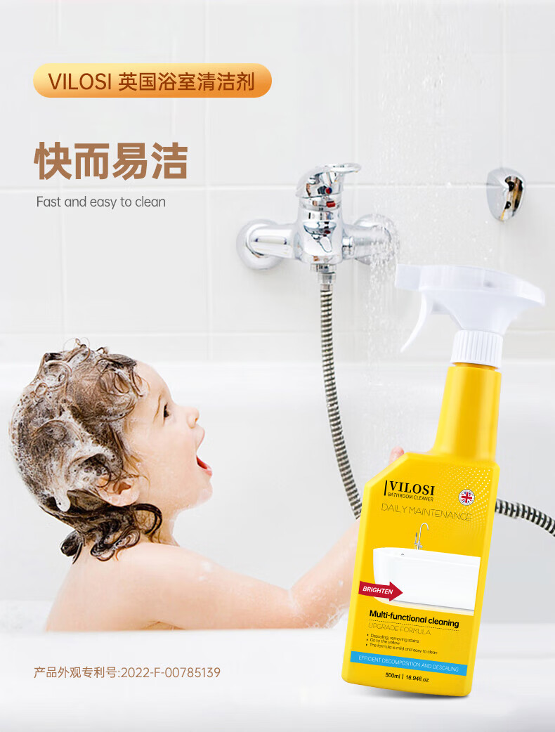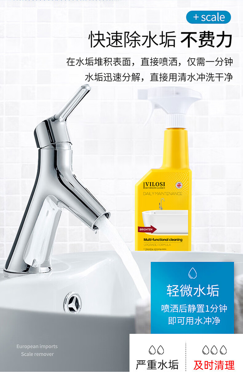 英国浴室玻璃瓷砖清洁剂500g*2瓶卫生间去水垢不锈钢去污清洗剂