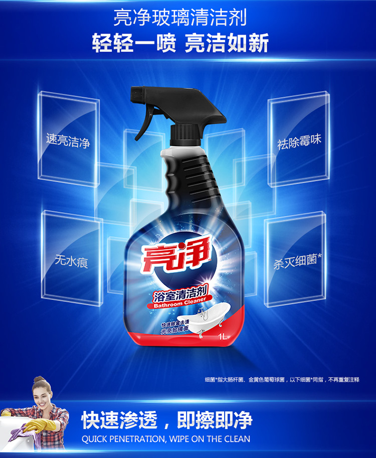 亮净浴室清洁剂1L 瓷砖玻璃卫生间清洗神器 强力杀菌除霉污垢去渍喷雾