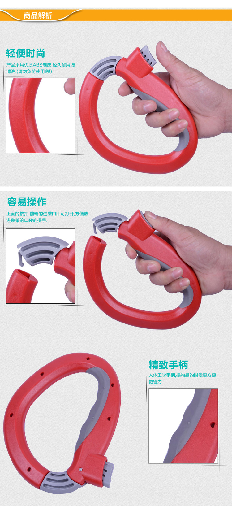 D型提菜器提物器提菜提物省力便携器拎菜器提袋器D型省力提菜器携便式塑料不勒手提物器拎菜器提袋器 颜色随机