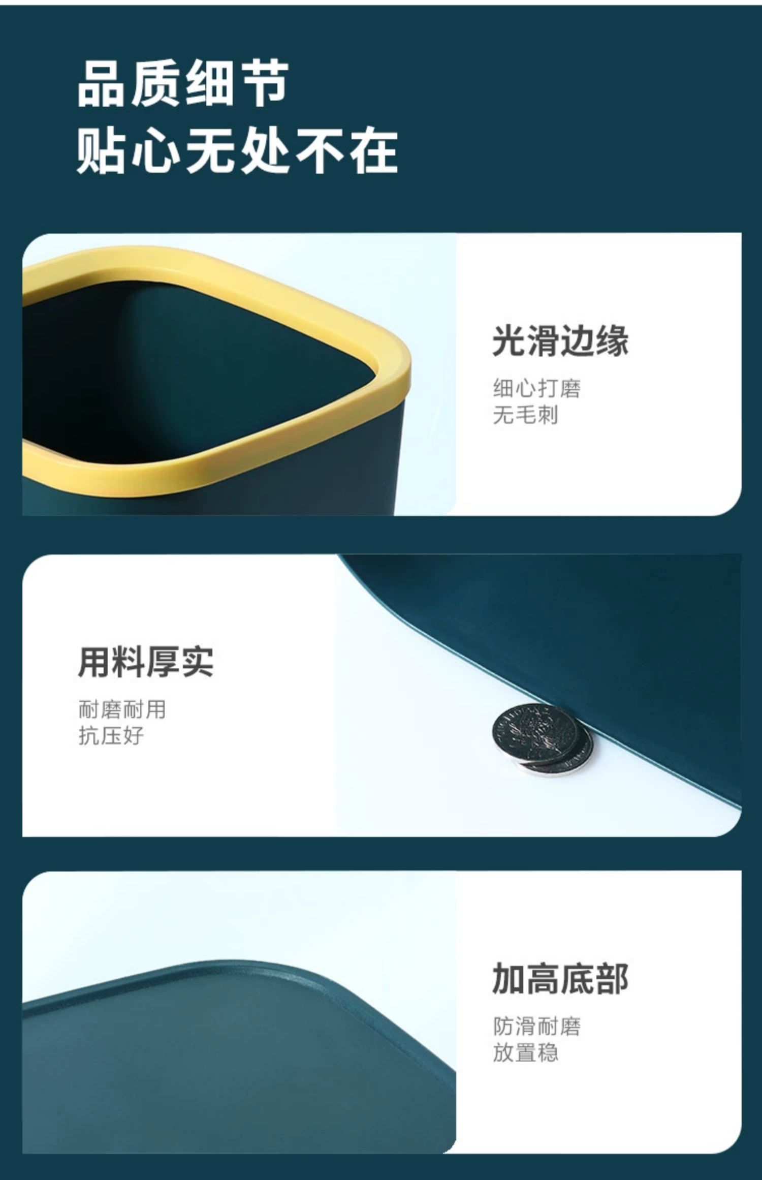 垃圾桶家用客厅轻奢厨房专用方形2023新款办公室厕所卫生间卫生桶