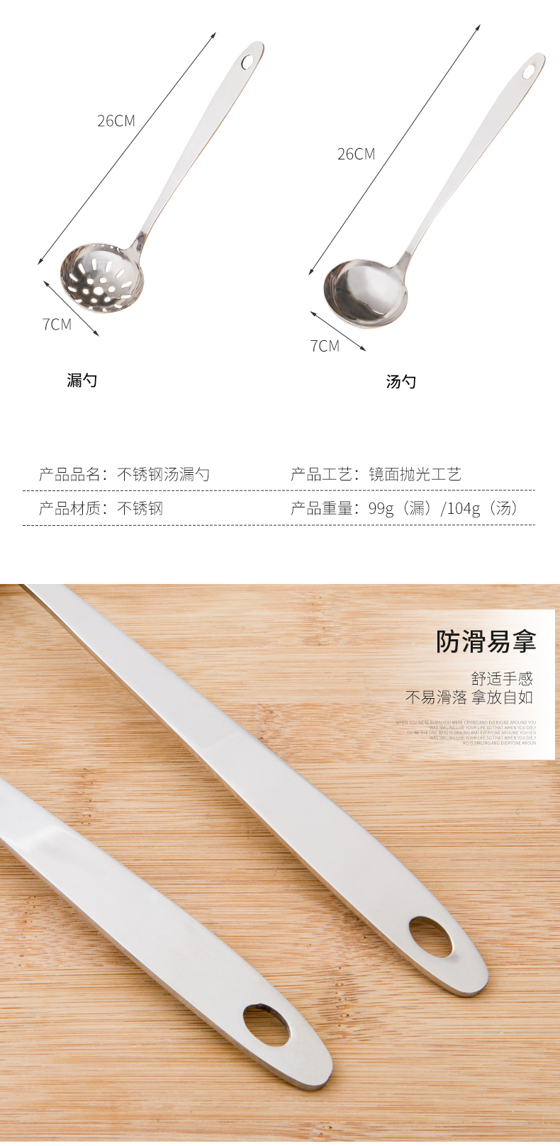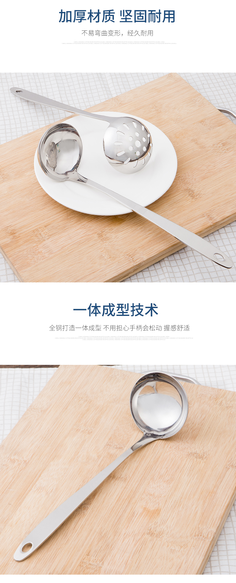 家居不锈钢汤勺加厚汤匙火锅勺长柄汤壳大汤匙全柄汤壳汤漏 漏勺款