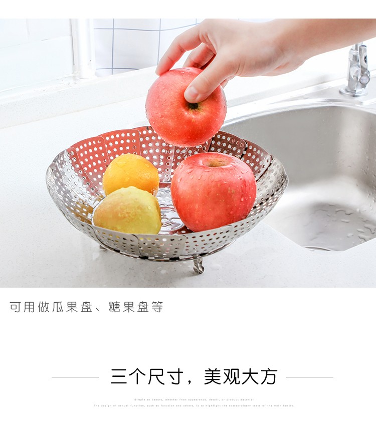 蒸架家用蒸锅架隔水圆形蒸菜架蒸格蒸笼不锈钢可伸缩莲花型蒸盘架 小号